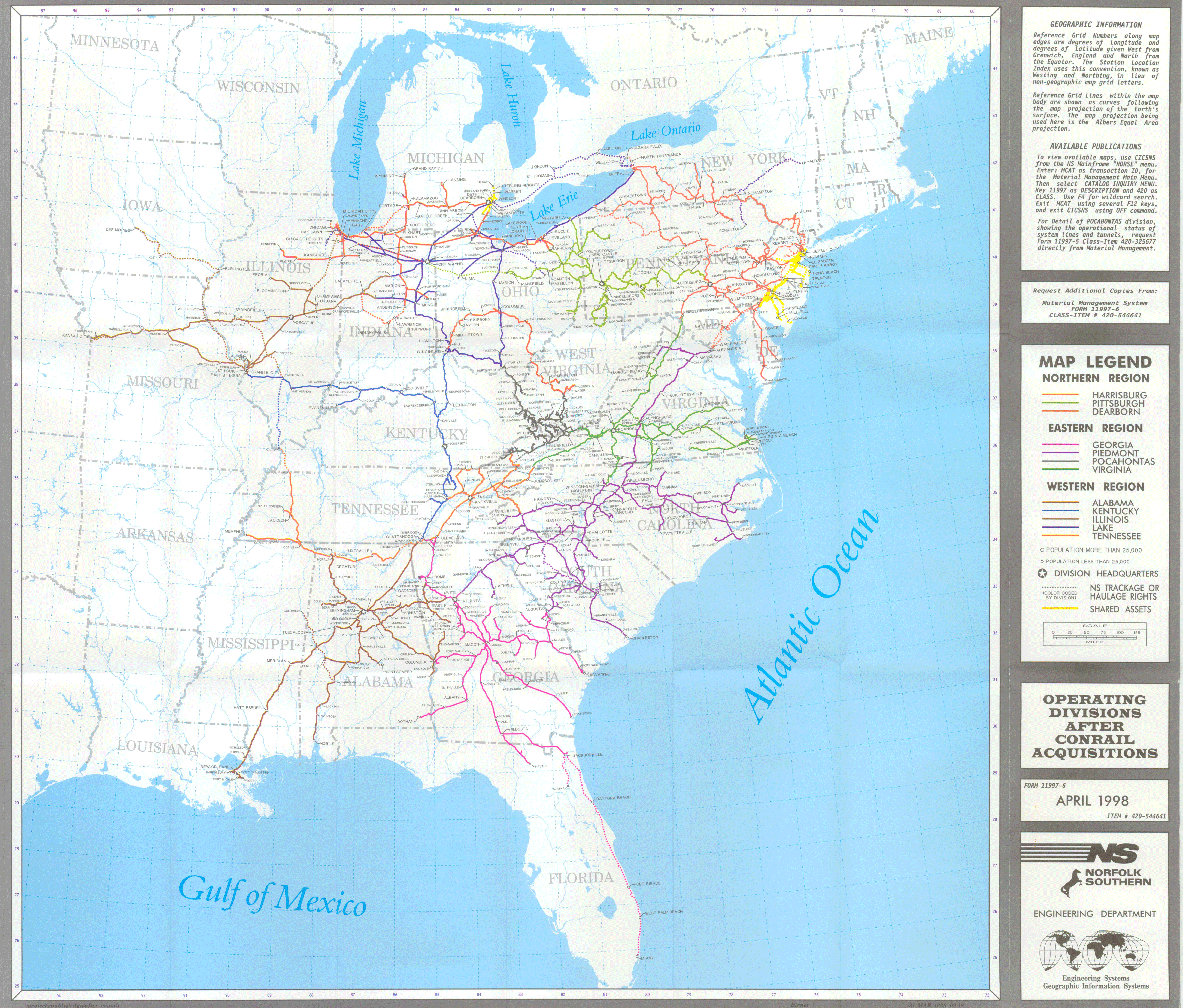 1999 Map of Norfolk Southern (after purchase of Conrail)